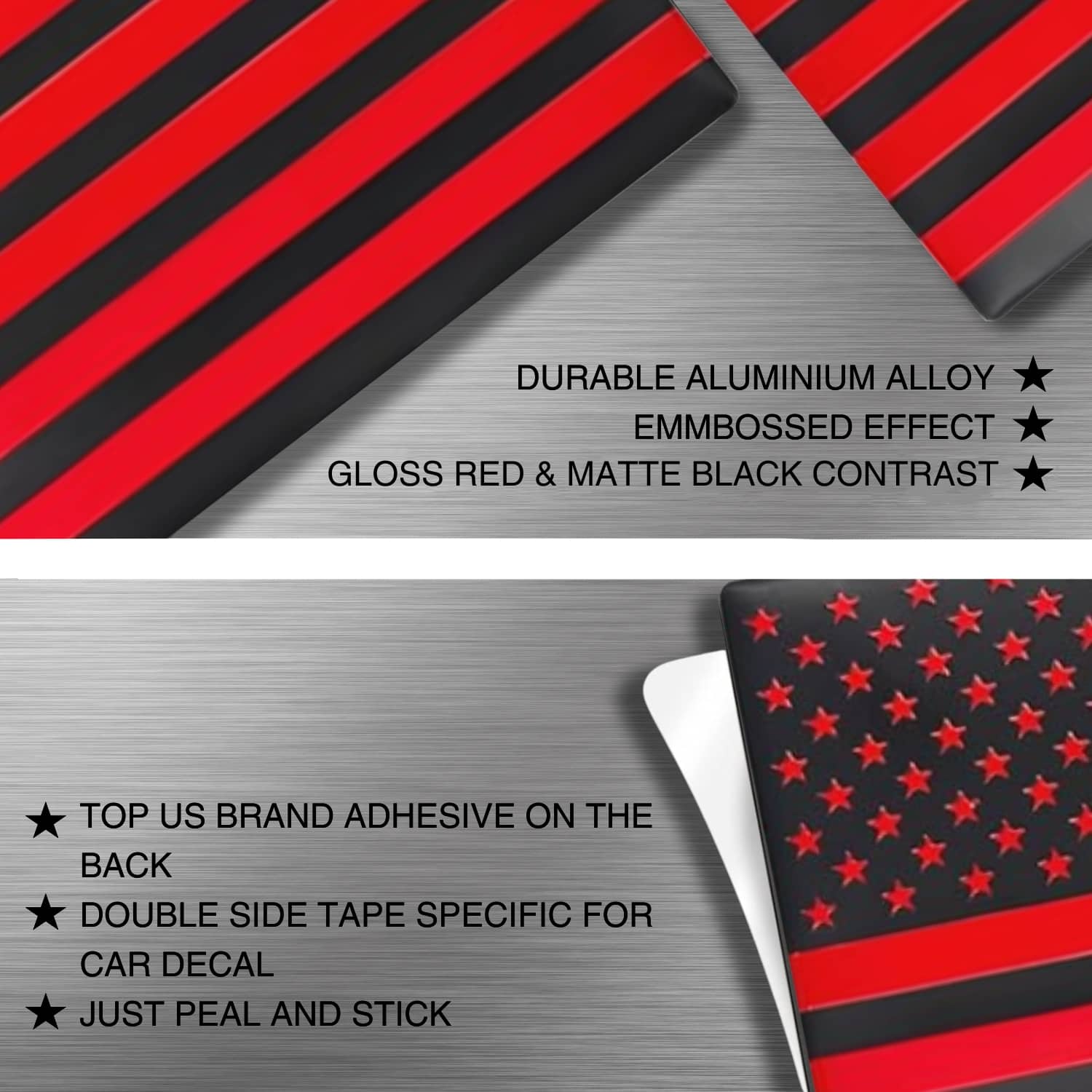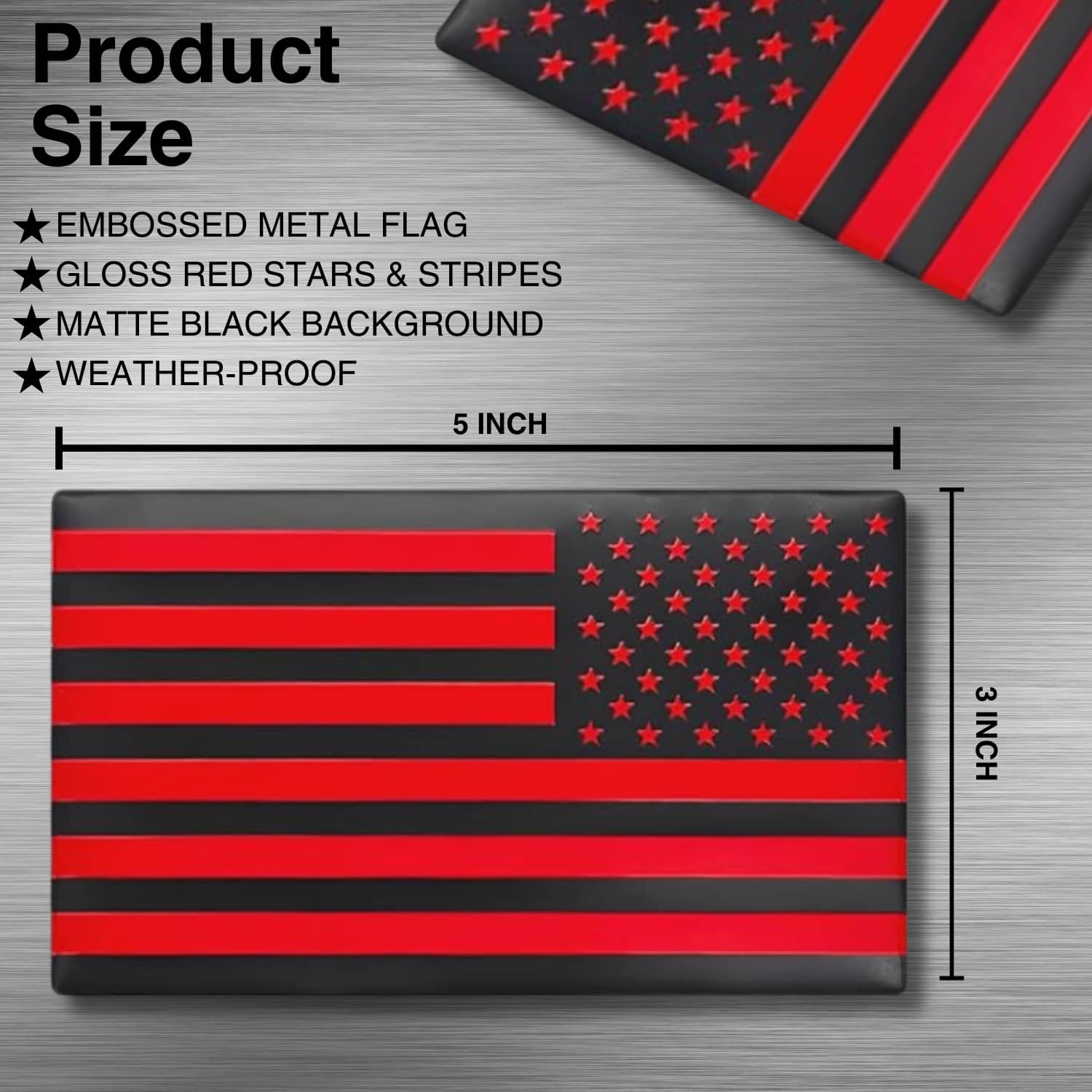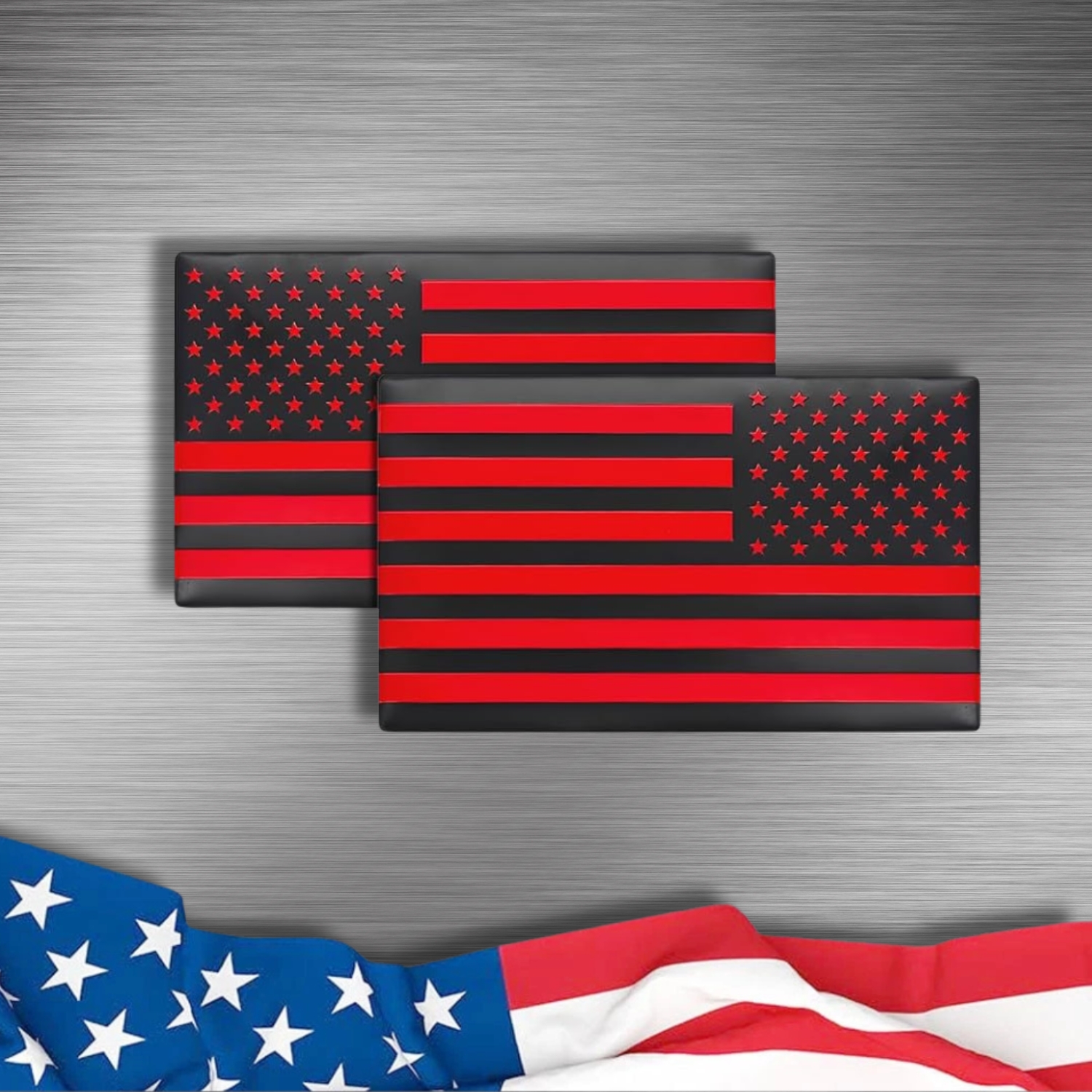 Turn heads with SpitFire Tuning’s 3D Metal Black Matte with Gloss Red Stars & Stripes American Flag Emblem Decal Stickers. Crafted from premium stainless steel, each emblem features a matte black background enhanced with gloss red stars and stripes—a striking, high-contrast design that symbolizes courage and respect for first responders.